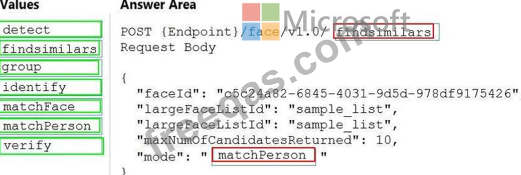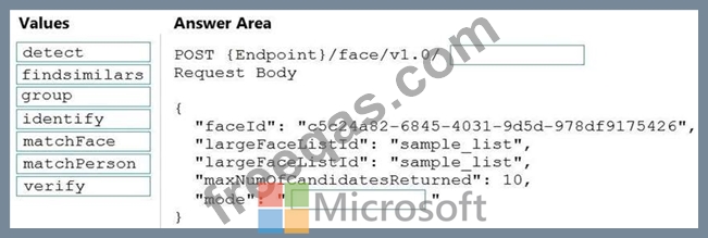 How should you complete the request? To answer, drag the appropriate values to the correct targets. Each value may be used once, more than once, or not at all. You may need to drag the split bar between panes or scroll to view content.