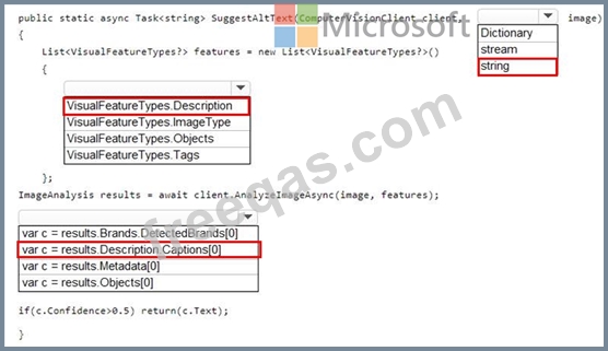 How should you complete the code? To answer, select the appropriate options in the answer area.