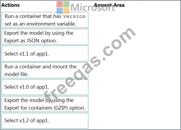Which three actions should you perform in sequence? To answer, move the appropriate actions from the list of actions to the answer area and arrange them in the correct order. (Choose three.)