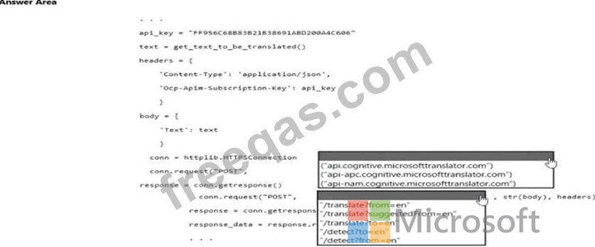 The application will translate text retrieved by using a function named get_text_to_be_translated. The text can be in one of many languages. The content of the text must remain within the Americas Azure geography.