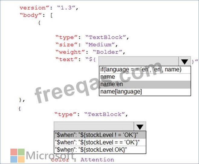 How should you complete the code? To answer, select the appropriate options in the answer area.