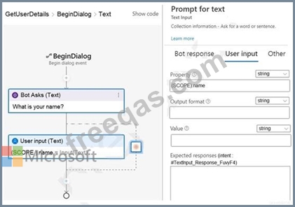 You are building a chatbot by using the Microsoft Bot Framework Composer as shown in the exhibit. (Click the Exhibit tab.)