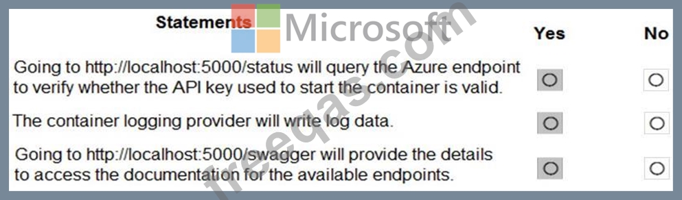 For each of the following statements, select Yes if the statement is true. Otherwise, select No.