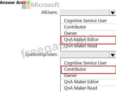 Which role should you assign to AllUsers and LeadershipTeam? To answer, select the appropriate options in the answer area.