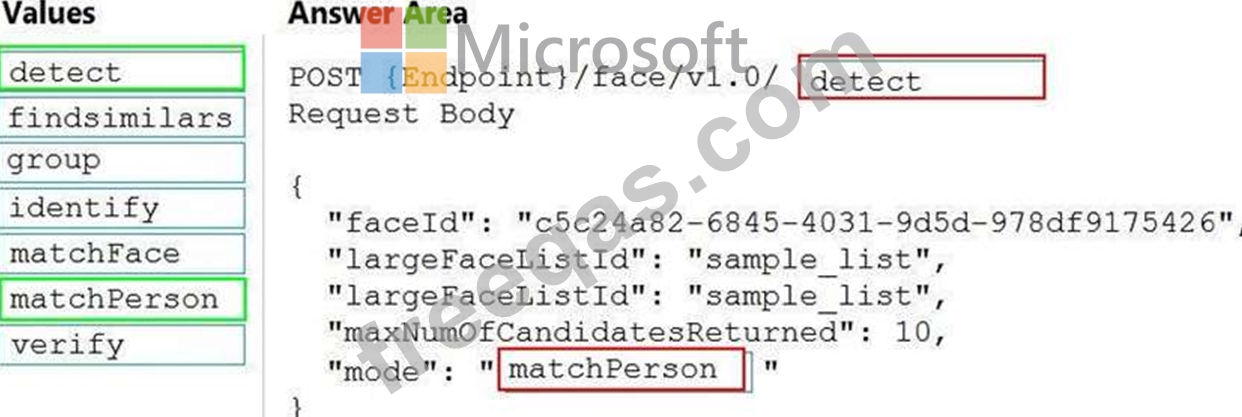 How should you complete the request? To answer, drag the appropriate values to the correct targets. Each value may be used once, more than once, or not at all. You may need to drag the split bar between panes or scroll to view content.