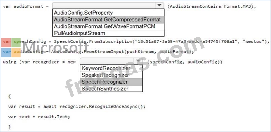 You are developing a streaming Speech to Text solution that will use the Speech SDK and MP3 encoding.