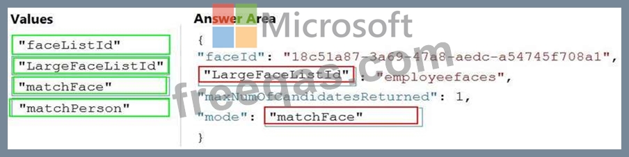 You are developing a call to the Face API. The call must find similar faces from an existing list named employeefaces. The employeefaces list contains 60,000 images.