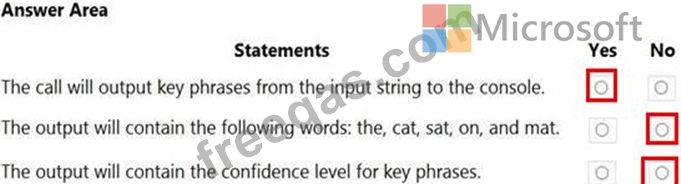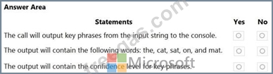 GetKeyPhrases(textAnalyticsClient, "the cat sat on the mat");