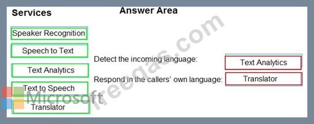 Which Azure Cognitive Services service should you use to meet each requirement? To answer, drag the appropriate services to the correct requirements. Each service may be used once, more than once, or not at all. You may need to drag the split bat between panes or scroll to view content.