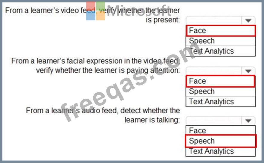 You need to use a video and audio feed from each learner's computer to detect whether the learner is present and paying attention. The solution must minimize development effort and identify each learner.