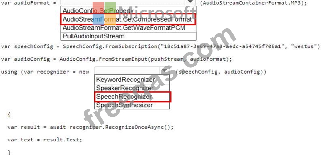 How should you complete the code? To answer, select the appropriate options in the answer area.