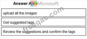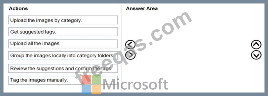 Which three actions should you perform in the Custom Vision portal? To answer, move the appropriate actions from the list of actions to the answer area and arrange them in the correct order.