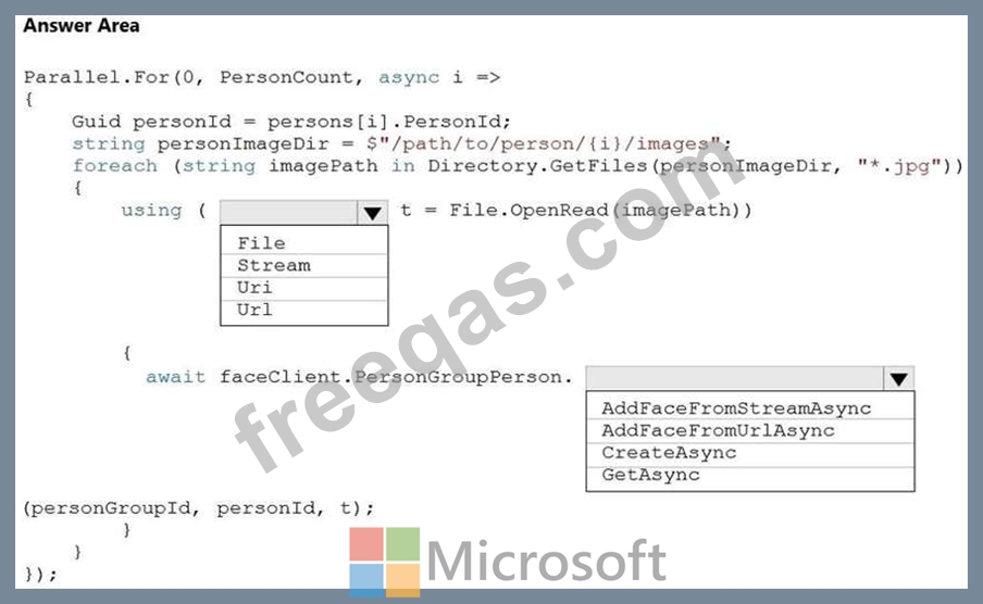 How should you complete the code? To answer, select the appropriate options in the answer area.