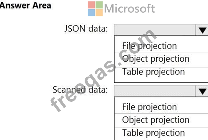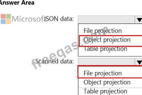 Which projection type should you use for each data type? To answer, select the appropriate options in the answer area.