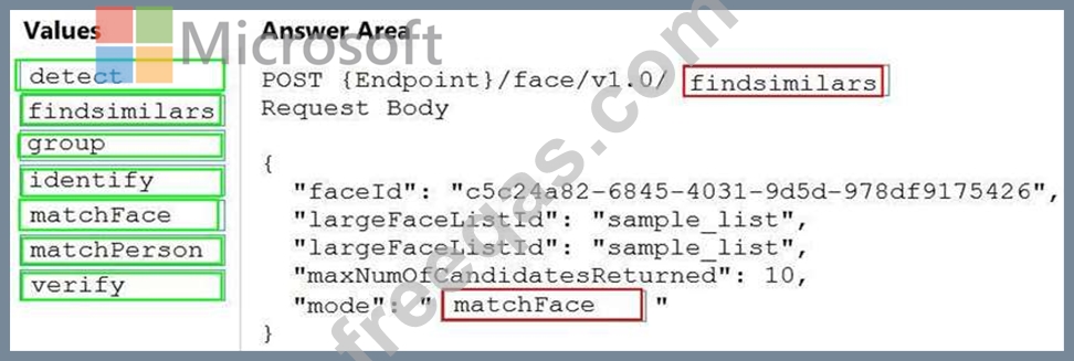 How should you complete the request? To answer, drag the appropriate values to the correct targets. Each value may be used once, more than once, or not at all. You may need to drag the split bar between panes or scroll to view content.