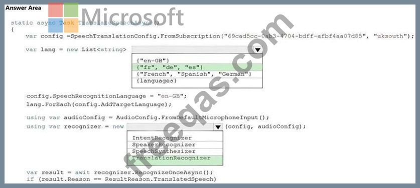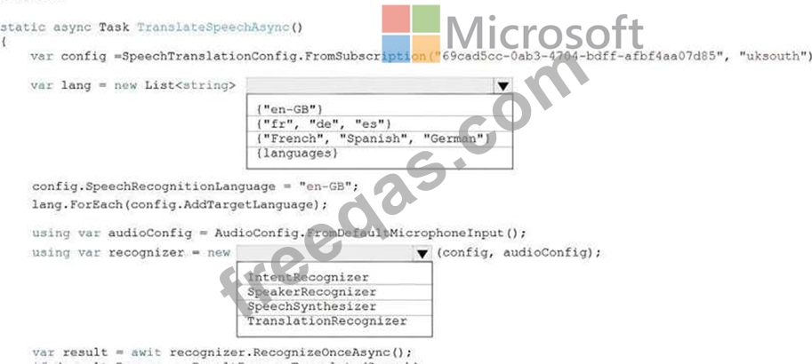 How should you complete the code? To answer, select the appropriate options in the answer area.
