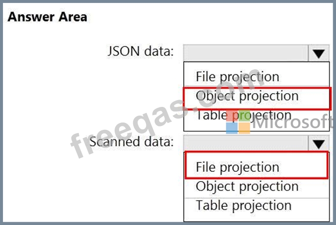 Which projection type should you use for each data type? To answer, select the appropriate options in the answer area.
