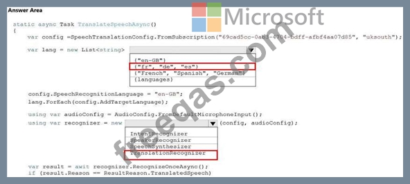 How should you complete the code? To answer, select the appropriate options in the answer area.