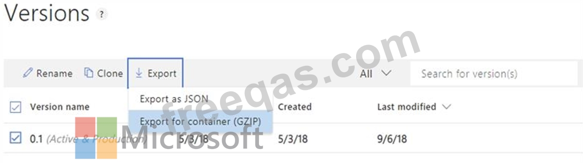 You plan to use a Language Understanding application named app1 that is deployed to a container.
