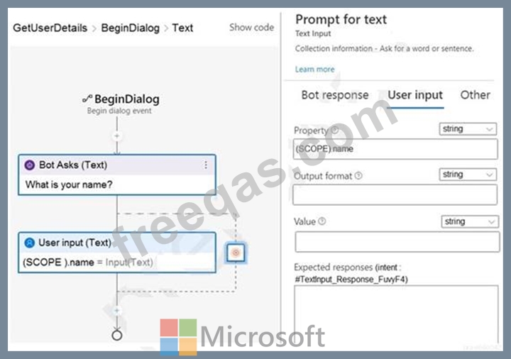 You are building a chatbot by using the Microsoft Bot Framework Composer as shown in the exhibit. (Click the Exhibit tab.)