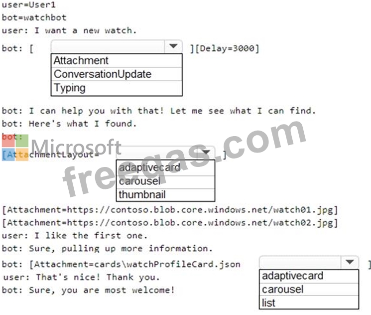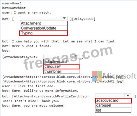 How should you complete the .chat file? To answer, select the appropriate options in the answer area.