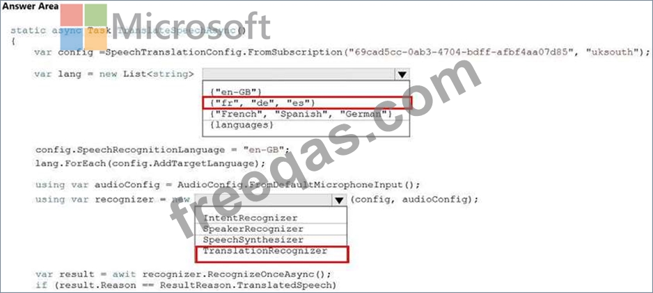 How should you complete the code? To answer, select the appropriate options in the answer area.