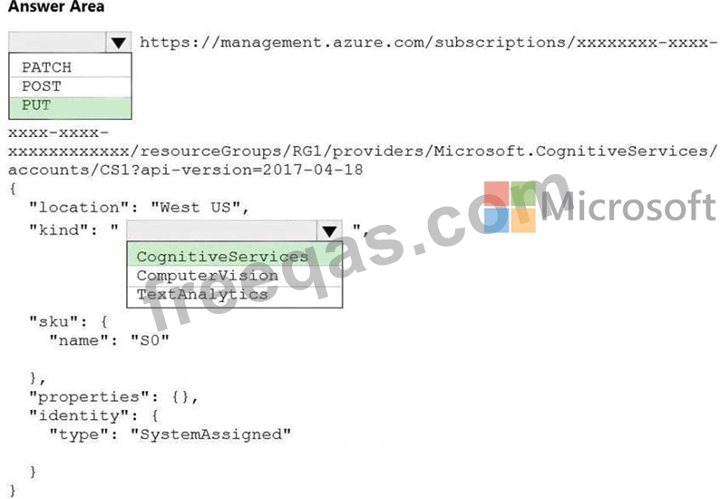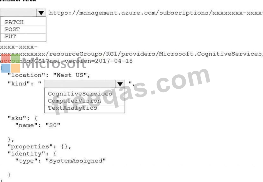 How should you complete the HTTP request to create the new resource? To answer, select the appropriate options in the answer area.