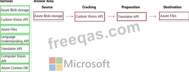How should you complete the skillset design diagram? To answer, drag the appropriate services to the correct stages. Each service may be used once, more than once, or not at all. You may need to drag the split bar between panes or scroll to view content.