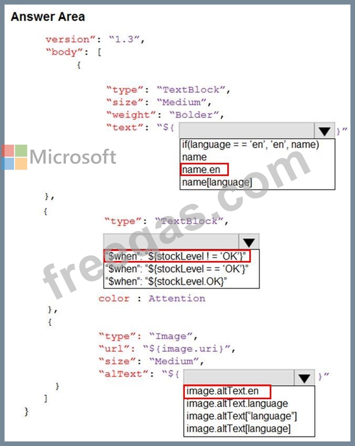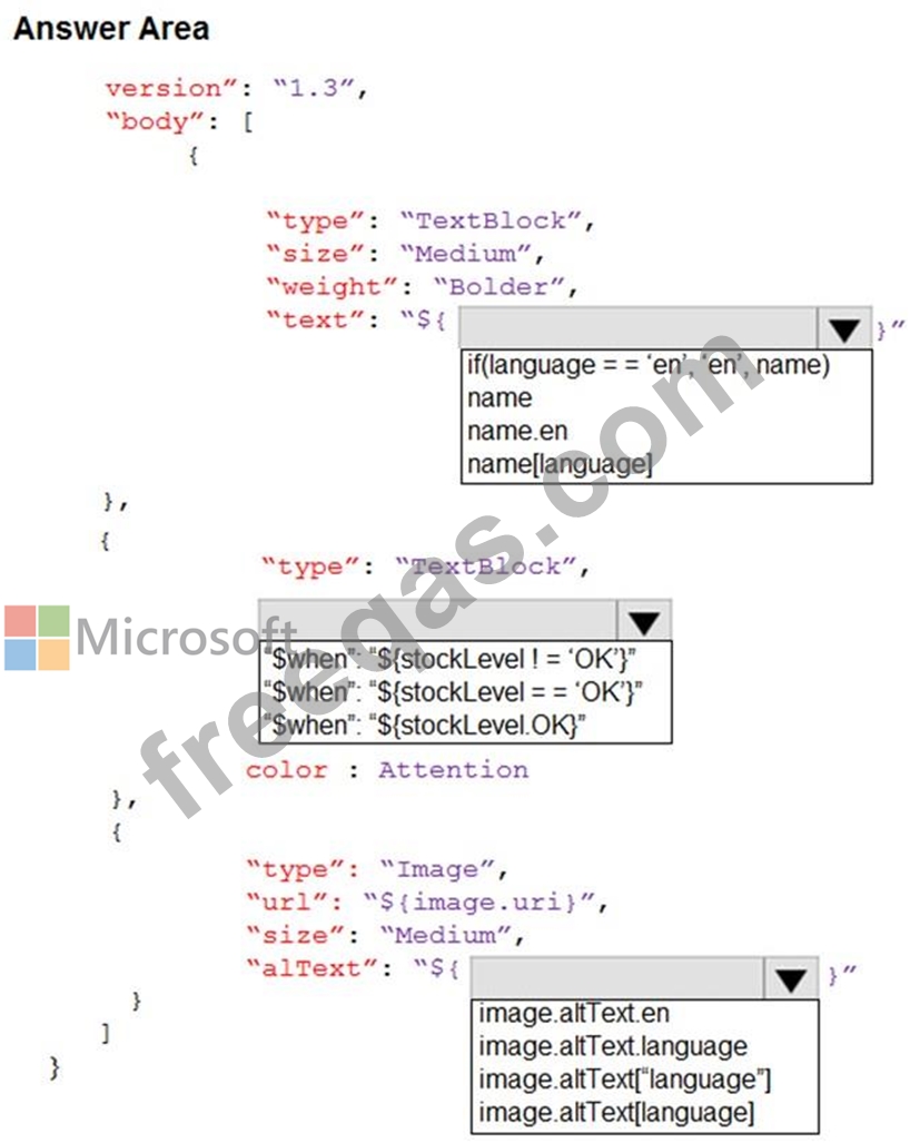 How should you complete the code? To answer, select the appropriate options in the answer area.