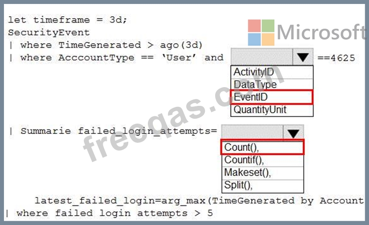 You need to create an Azure Log Analytics query to identify failed user sign-in attempts from the last three days. The results must only show users who had more than five failed sign-in attempts.