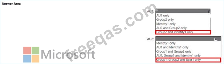 Which resources can be added to AU1 and AU2? To answer, select the appropriate options in the answer area.