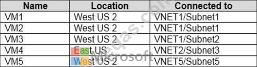 You have an Azure subscription that contains the virtual machines shown in the following table.
