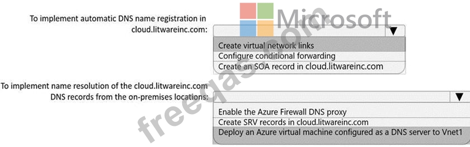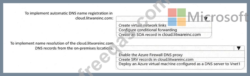 You need to implement name resolution for the cloud.liwareinc.com. The solution must meet the networking requirements.