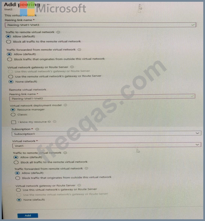 You have a peering connection between Vnet1 and Vnet3 as shown in the Peering -Vnet1-Vnet3 exhibit.