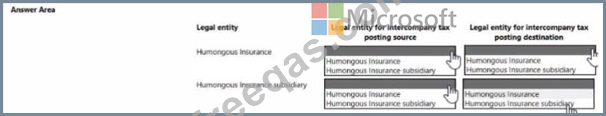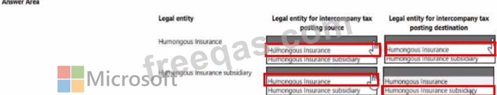 You need to configure expense management tor Humongous Insurance and its subsidiary. Which options should you use? To answer select the appropriate options in me answer area NOTE: Each correct selection is worth one point.