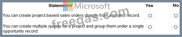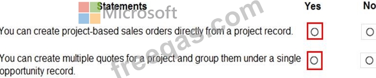 A company plans to implement Dynamics 365 Project Operations. Instructions: For each of the following statements, select Yes if the statement is true. Otherwise, select No. NOTE: Each correct selection is worth one point.
