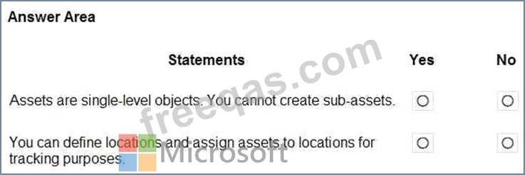 A company uses Dynamics 365 Supply Chain Management. The company plans to implement Asset Management.