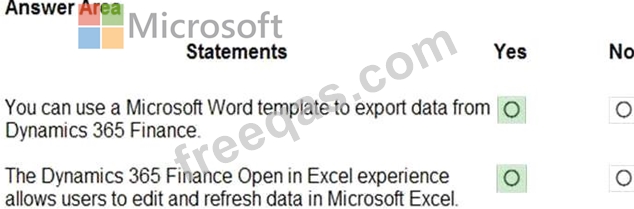 A company uses Dynamics 365 Finance.