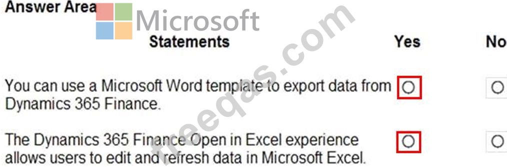 Instructions: For each of the following statements, select Yes if the statement is true. Otherwise, select No.