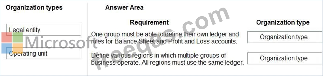 An organization consisting of several companies is implementing Dynamics 365 Finance. The organization views company and department data by geographical regions and business functions.