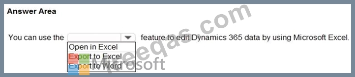 You need to recommend a feature that allow users to edit Dynamic 365 data by using Microsoft Office. Changes that you make in Microsoft Office must update Dynamic 365.