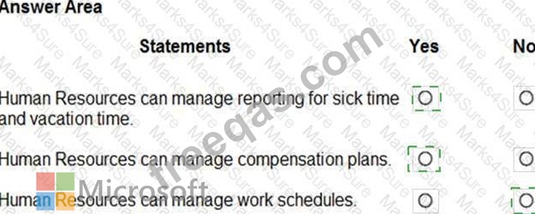A customer wants to implement Dynamics 365 Human Resources to manage employee benefits. For each of the following statements, select Yes if the statement is true. Otherwise, select No.