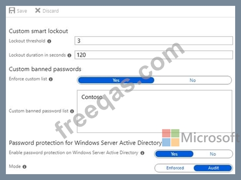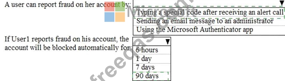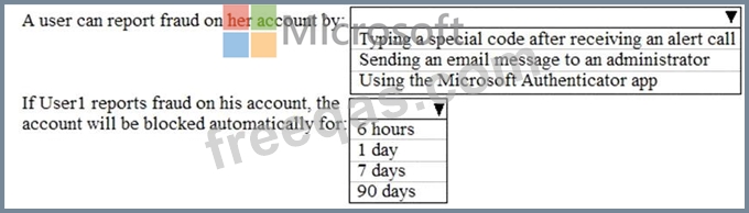 You enable multi-factor authentication for contoso.com and configure the following two fraud alert settings:
