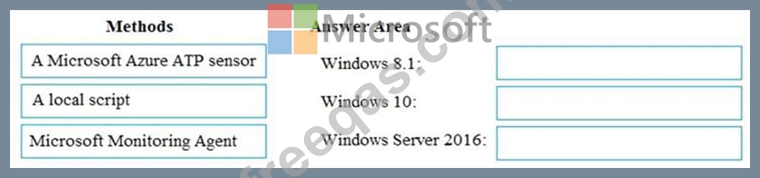 You need to onboard the devices to Windows Defender Advanced Threat Protection (ATP). The solution must avoid installing software on the devices whenever possible.