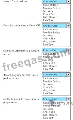 Match the desired requirement to the most appropriate custom Field Type to use.