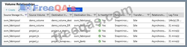 A customer wants to ensure that their volumes are protected. In ONTAP System Manager, under the Protectionsection, you see the screen that is shown in the exhibit. The company has an asynchronous mirror policy of less than a 60-minute lag.