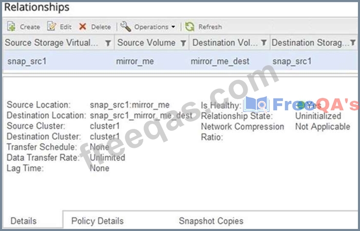Your customer wants to protect a volume and replicate it to a secondary volume. The customer has tried to configure this relationship using OnCommand System Manager. Upon reviewing this newly configured relationship, you discover that the configuration does not satisfy the customer's stated requirements.