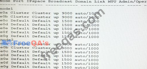A customer contacts you and asks for assistance in determining which ports can be used for a new broadcast domain on a clustered Data ONTAP 8.3.2 system. The system is serving LUNs using the FC protocol and is in production. However, for Ethernet traffic, it is not yet in production. The customer provides you the output of the network port show command.
