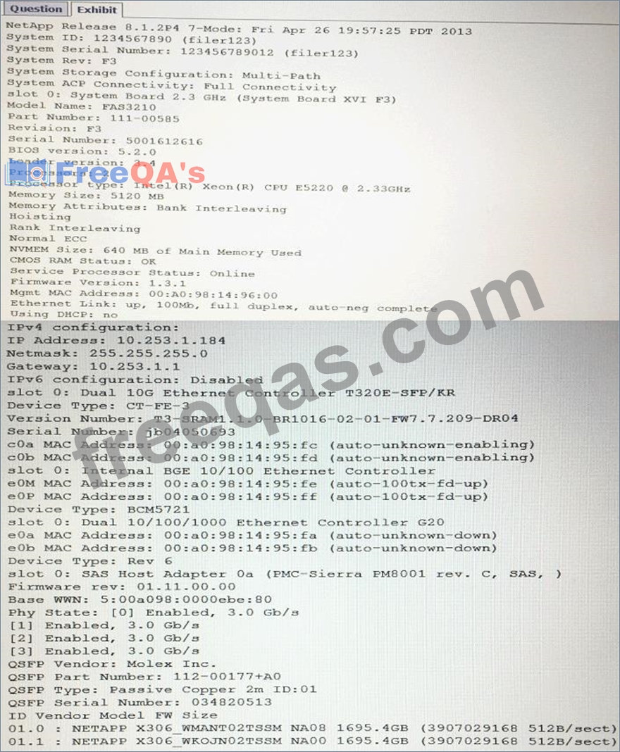 The output of the sysconfig -a command is shown in the exhibit.