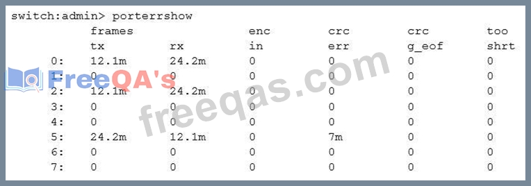 Referring to the exhibit, what is the reason for the errors that are shown on port 5 on the switch of one of the fabrics?